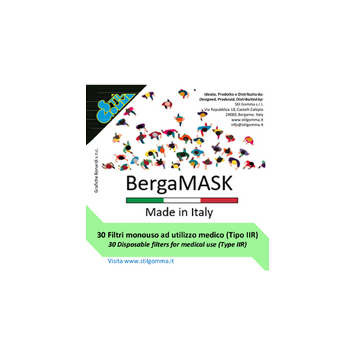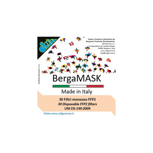 Vedi la scheda tecnica (PDF) FILTRO FFP2 UNI EN 149:2009Confezione di 30 filtri di ricambio FFP2 per l’utilizzo su mascherina BergaMASK.Il filtro n...