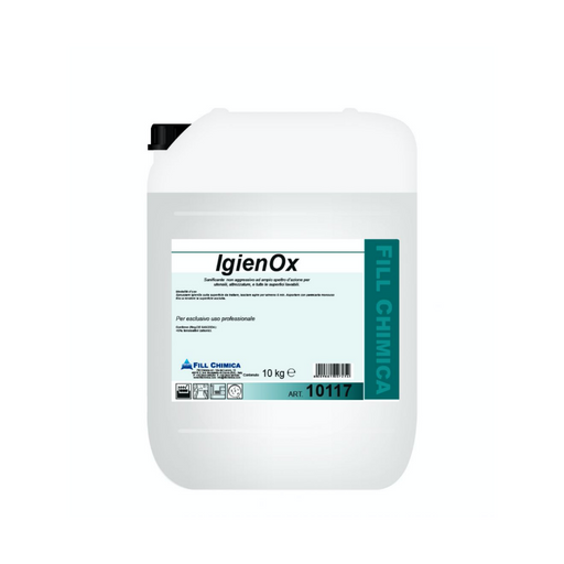 Vedi la scheda tecnica (PDF)IgienOx è un igienizzante a base di perossido d’idrogeno stabilizzato e sali quaternari d’ammonio ad ampio spettro d’az...