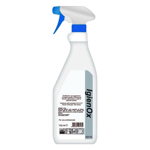 Vedi la scheda tecnica (PDF)IgienOx è un igienizzante a base di perossido d’idrogeno stabilizzato e sali quaternari d’ammonio ad ampio spettro d’az...