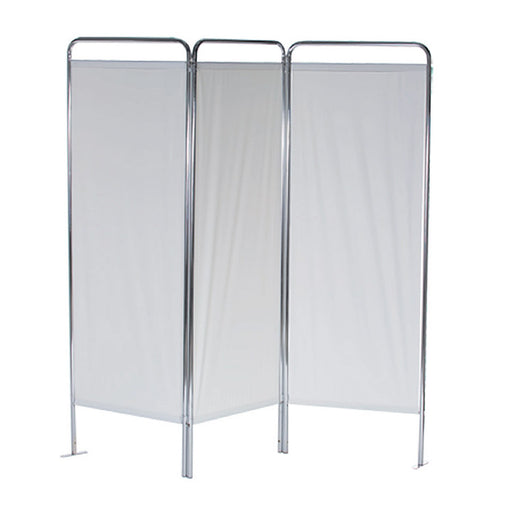 Paravento a tre ante su ruote.Struttura in tubo di alluminio anodizzato. Tendine in plastica lavabile, autoestinguente. Ruote da Ø 50 mm (quelle ce...