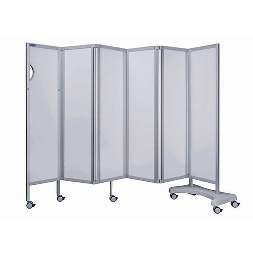 Separé composto da 6 pannelli in laminato pieghevoli più un pannello di supporto. Il basamento dotato di ruote consente di spostare e riposizionare...